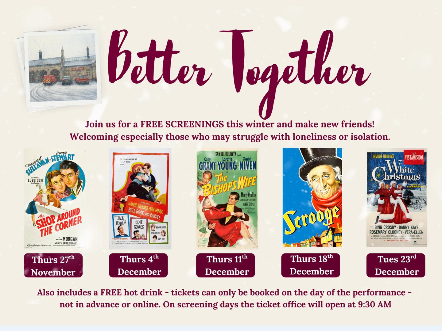 Delighted to announce our full line up for our FREE screenings this winter - tickets also include a free hot drink & are will only be available